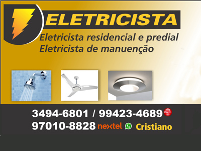 Eletricista Residencial e Predial. Eletricista de manutenção. Instalação de luminárias e ventilador de teto.